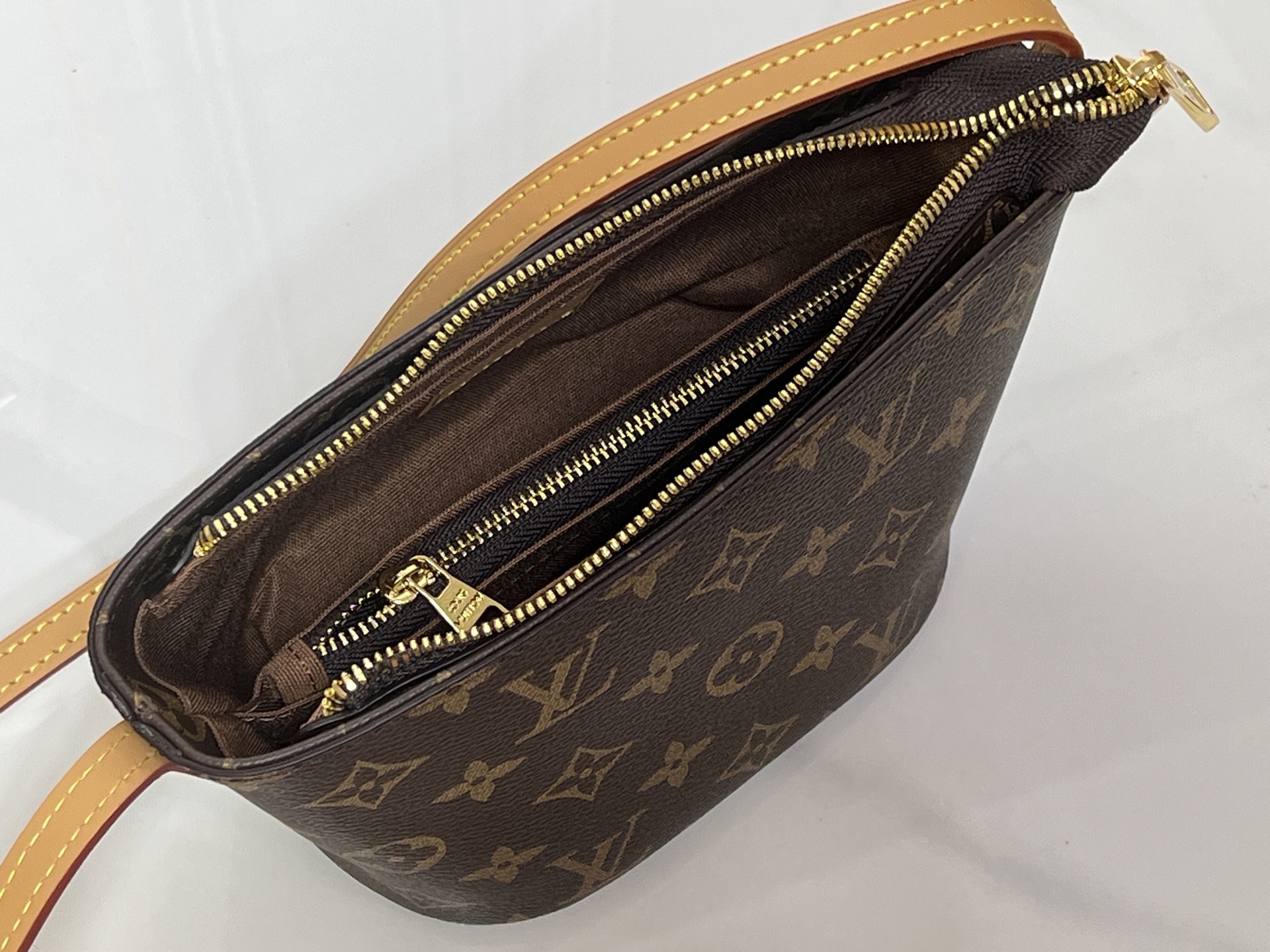 装飾:金糸による微細なLVモノグラム刺繍(光の角度で立体感変化)