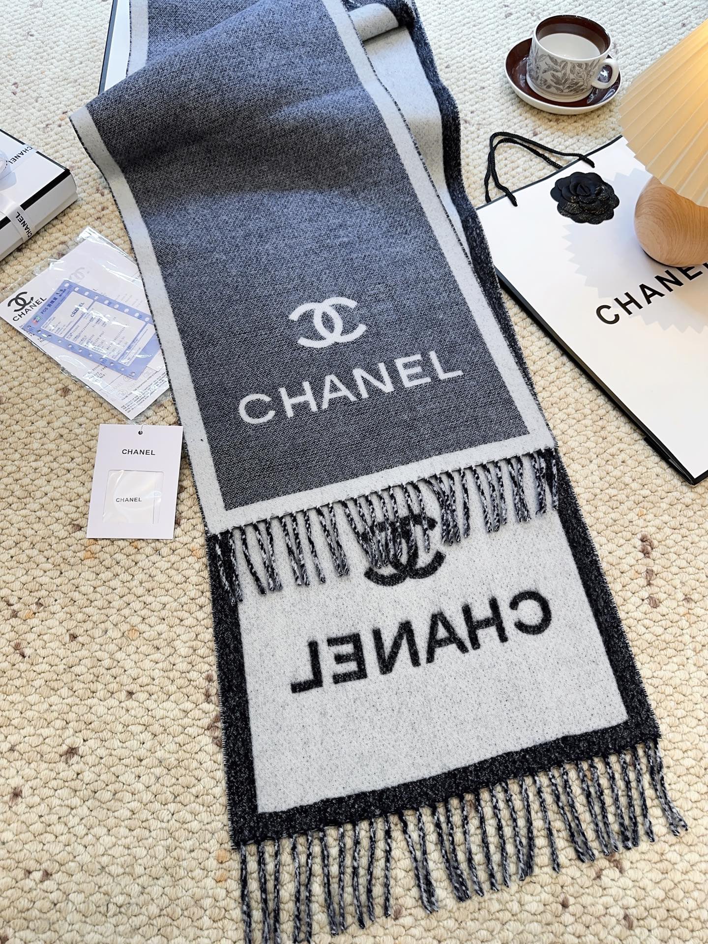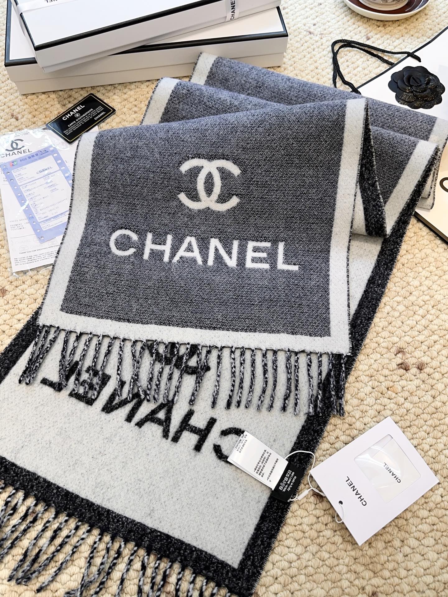 シャネル公式コレクション 100%メリノウール ダブルフェイス『ジャカードモノグラム』184×34cm ハイエンドテクノロジーで生まれた芸術品
