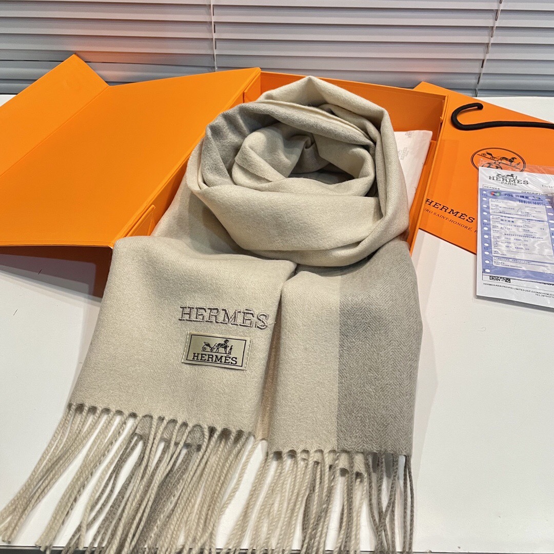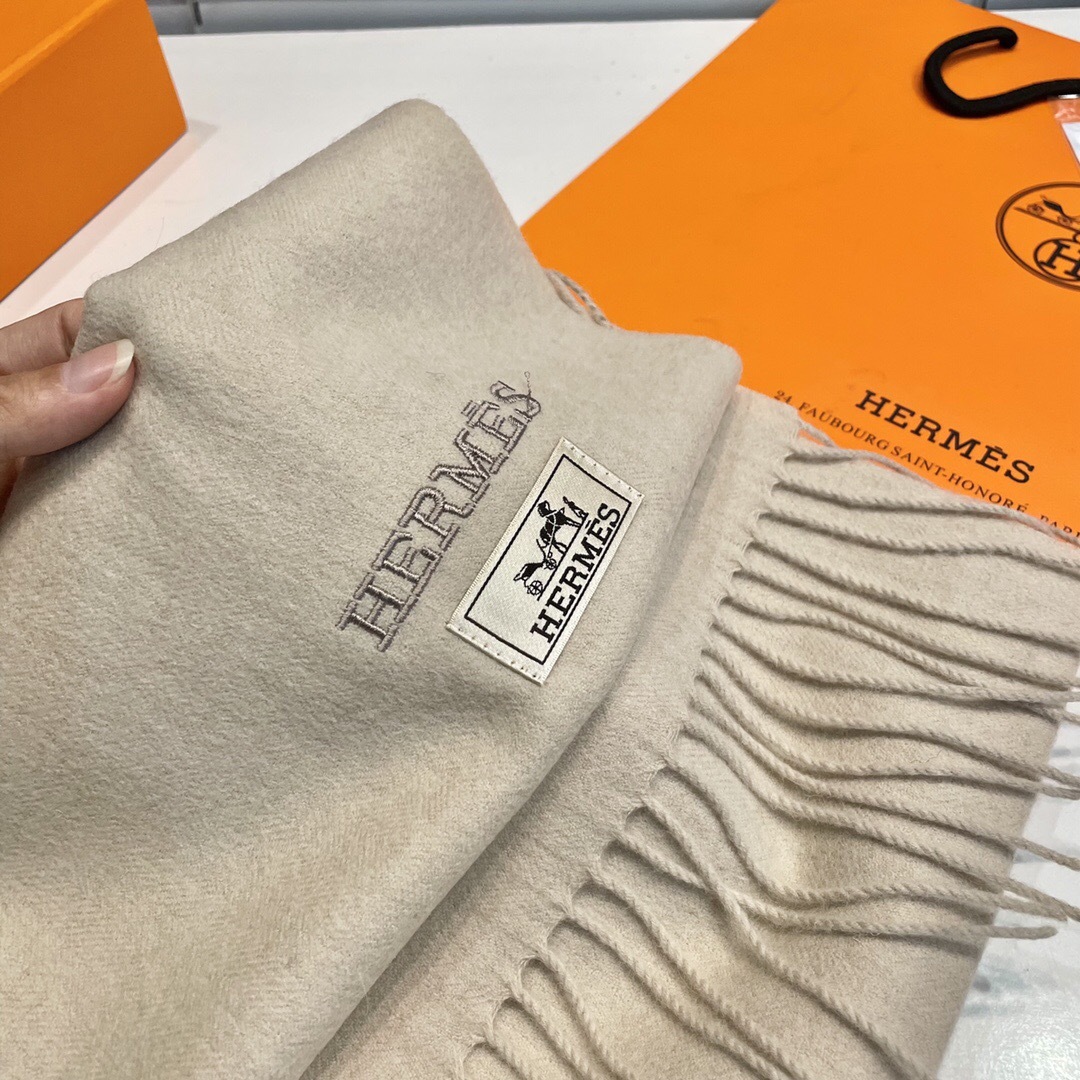 Hermès公式コレクション 100%カシミヤダブルフェイス『クラシックHモノグラム』35×200cm ハイエンドマフラー 限定輸入生地と職人技の極致