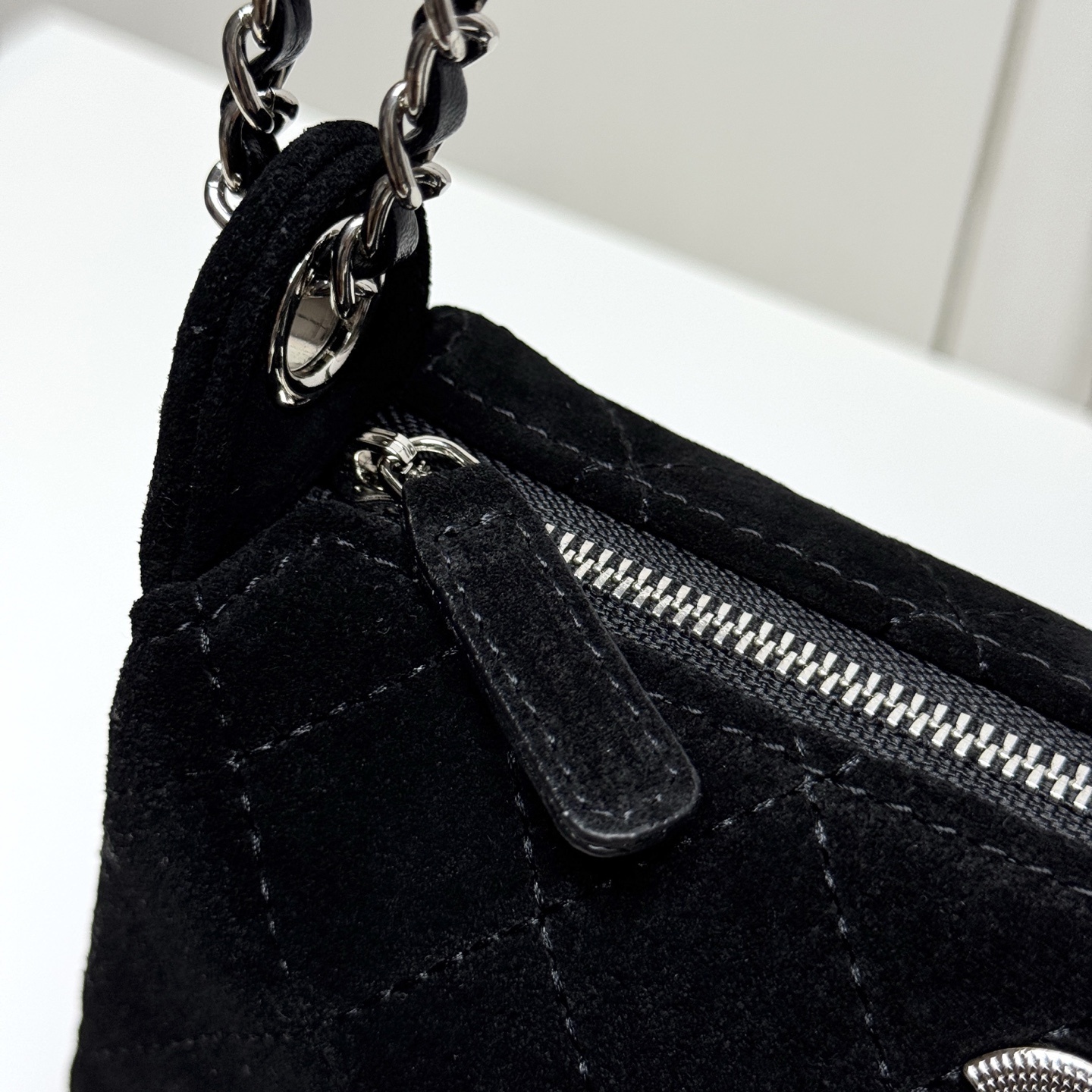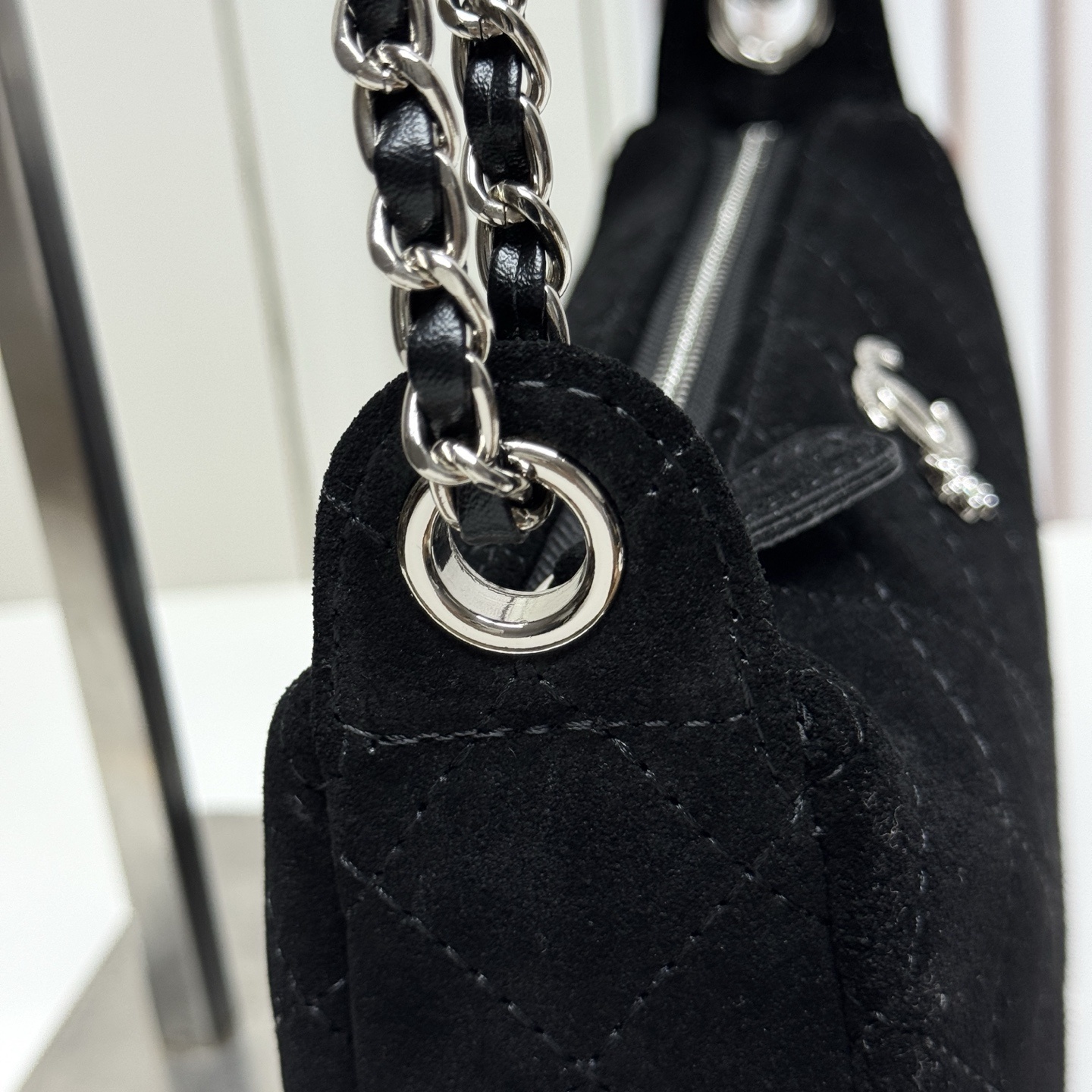 シルバークラスター:シャネルの伝統的な装飾を現代的にアレンジしたデザイン。光沢感があり、シンプルながら存在感のある仕上げ。