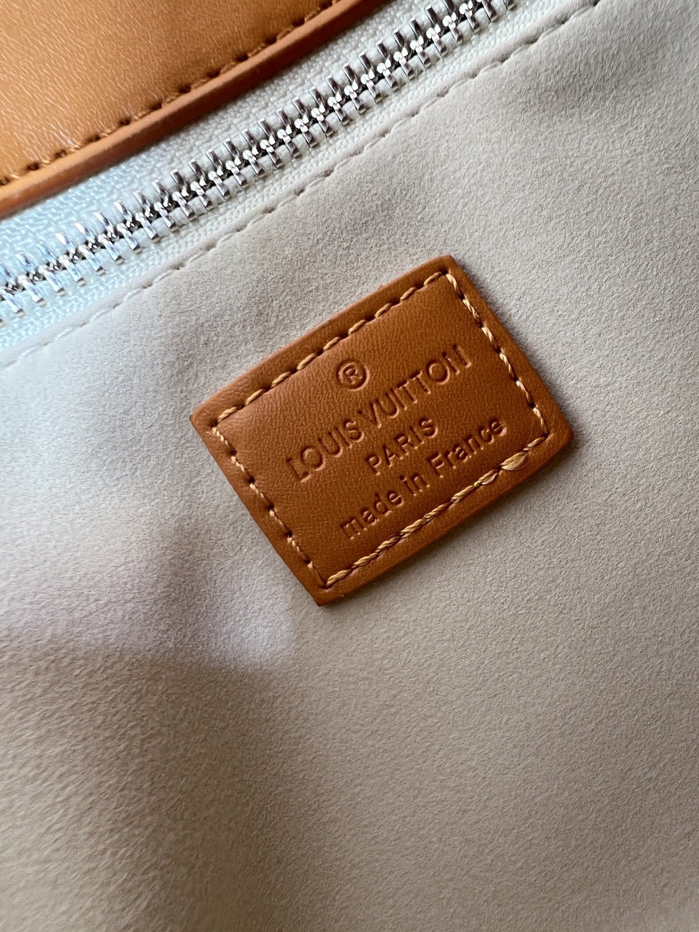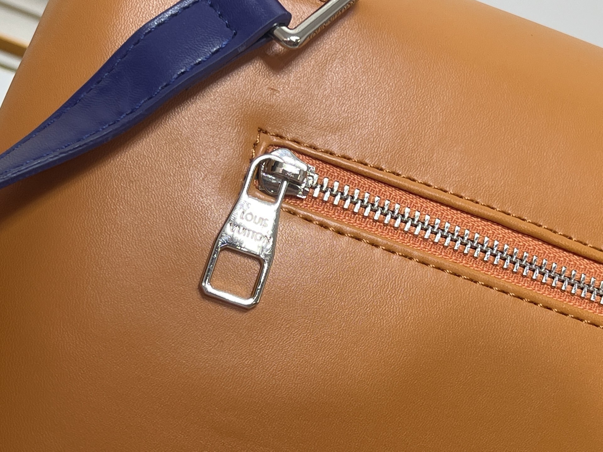 ルイ・ヴィトン2025春夏コレクション「ポシェット・メティス 刺繍メールボーイバッグ(オレンジカラー)」。1980年代の郵便配達員バッグを現代解釈したモチーフに、オレンジ色のモノグラム刺繍を施した限定アイテム。軽量な構造と実用性を兼ね備え、通勤からデートまで幅広いシーンで注目を集める。