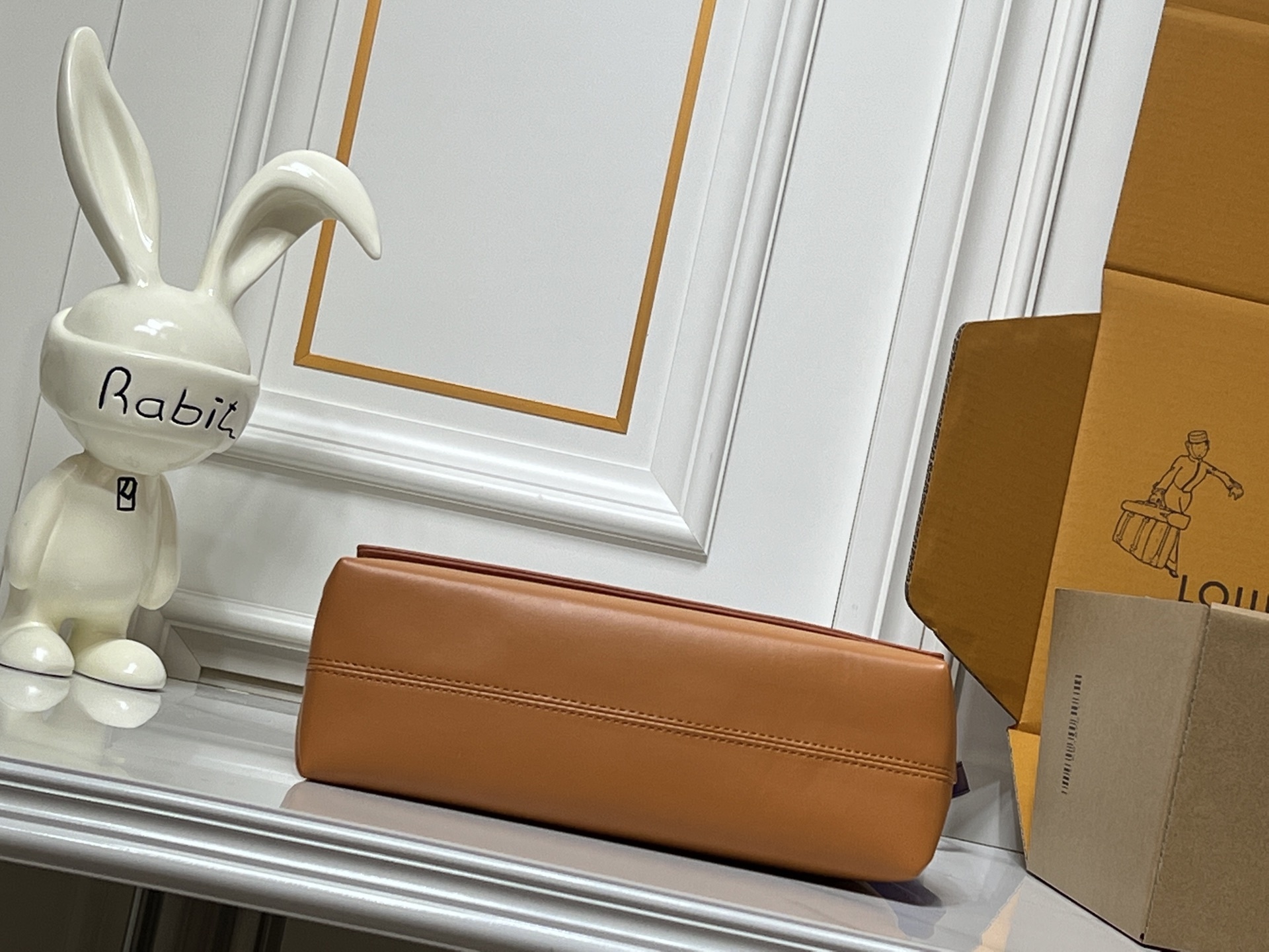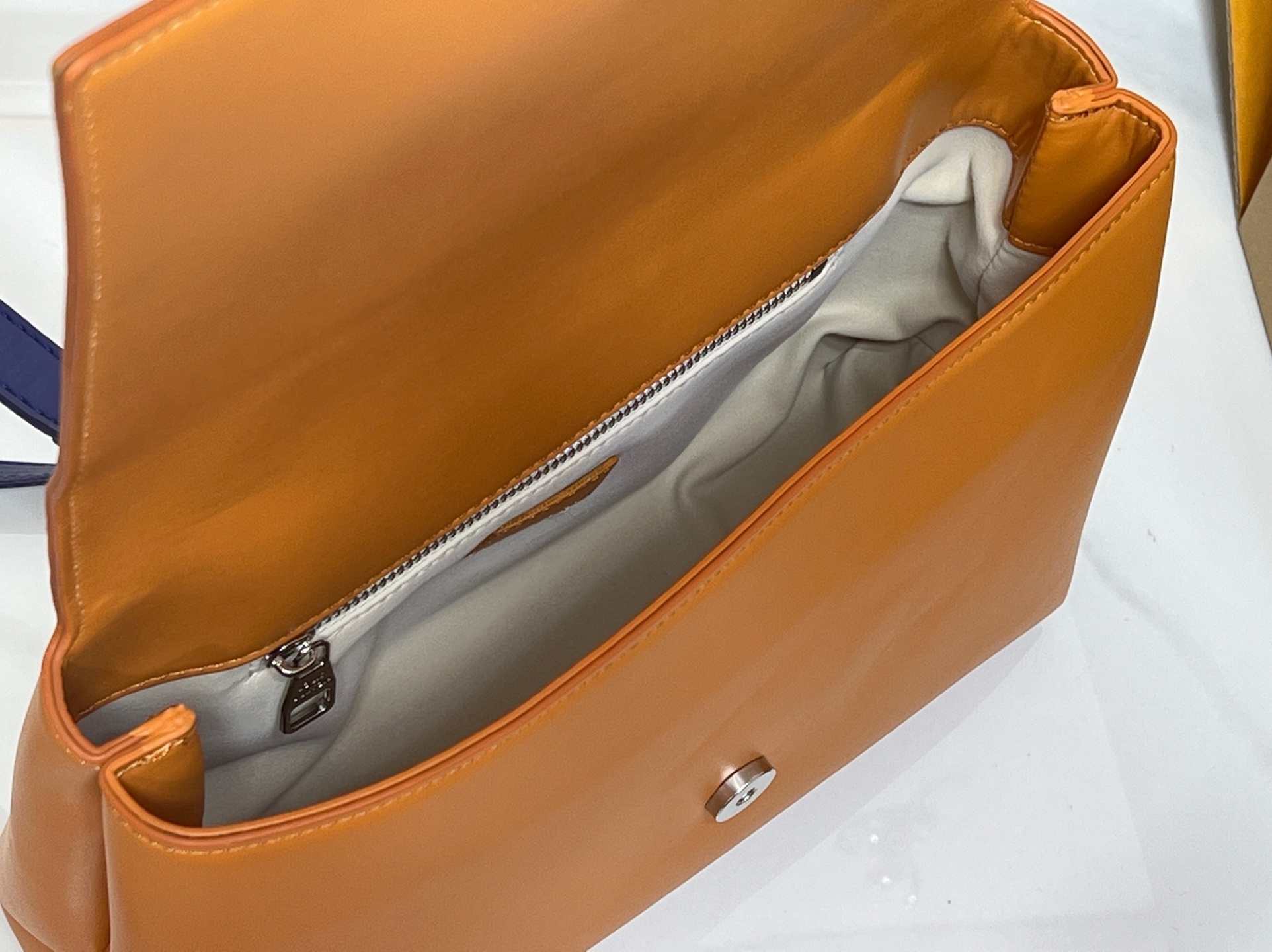 郵便配達員バッグのDNA:1986年のMonceauバッグをベースに、2014年に近代化されたポシェット・メティスのシルエットを継承。直線的なフォルムにオレンジ色の刺繍モノグラムを配置し、レトロフューチャーな魅力を演出。