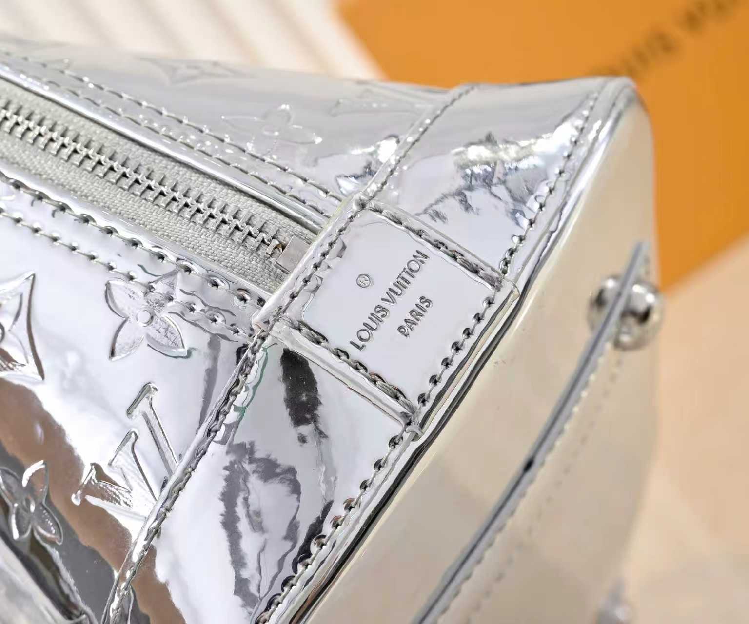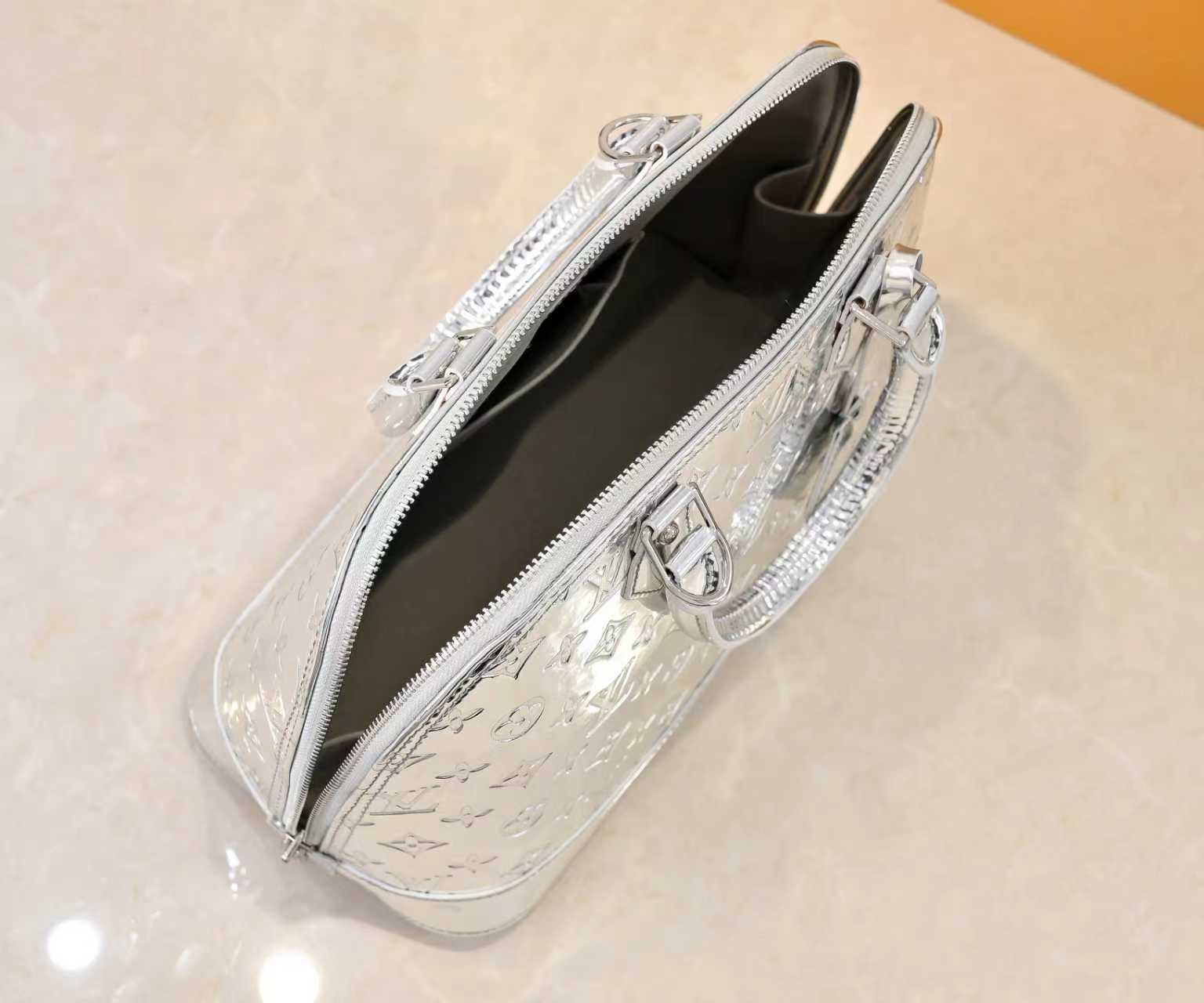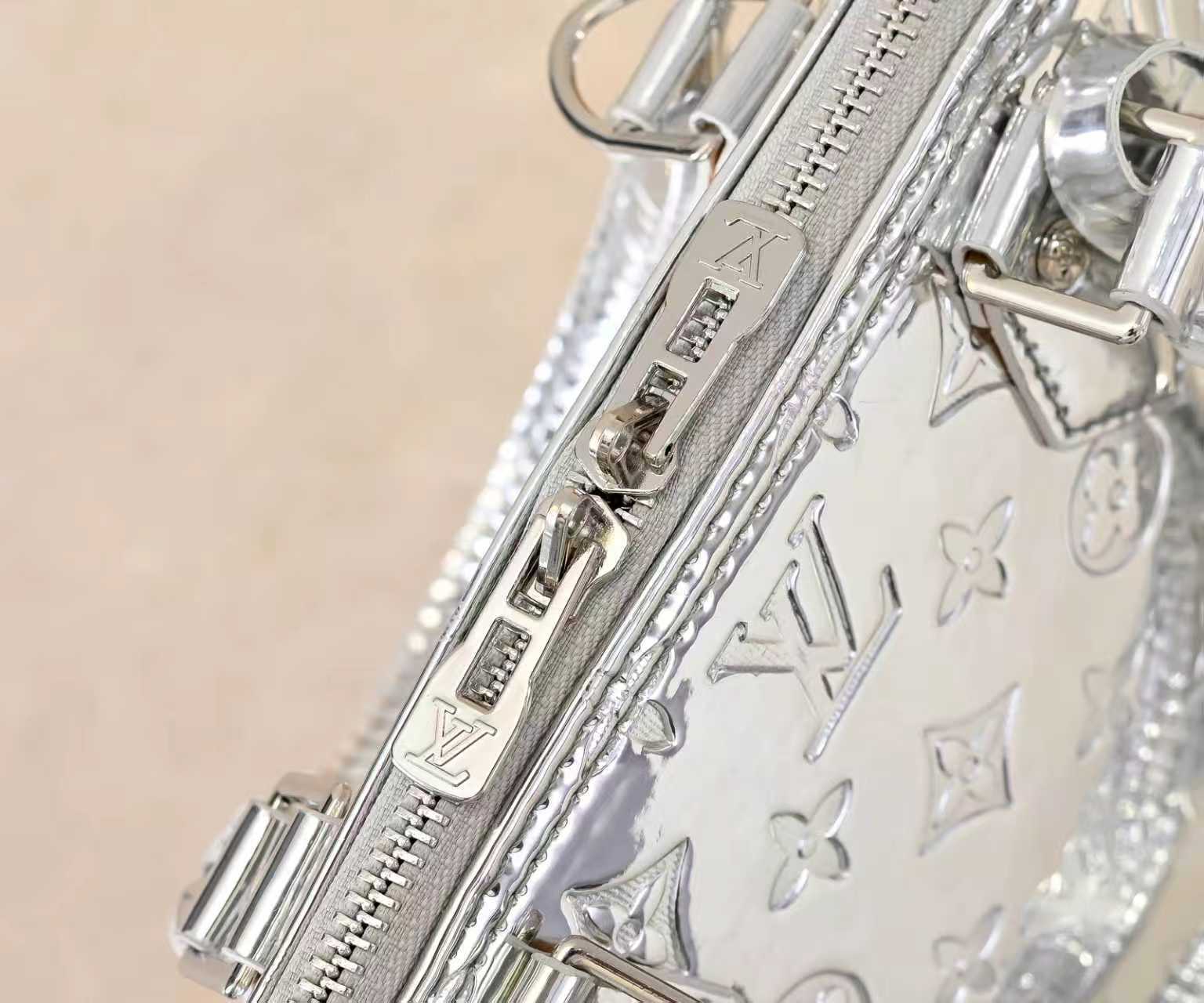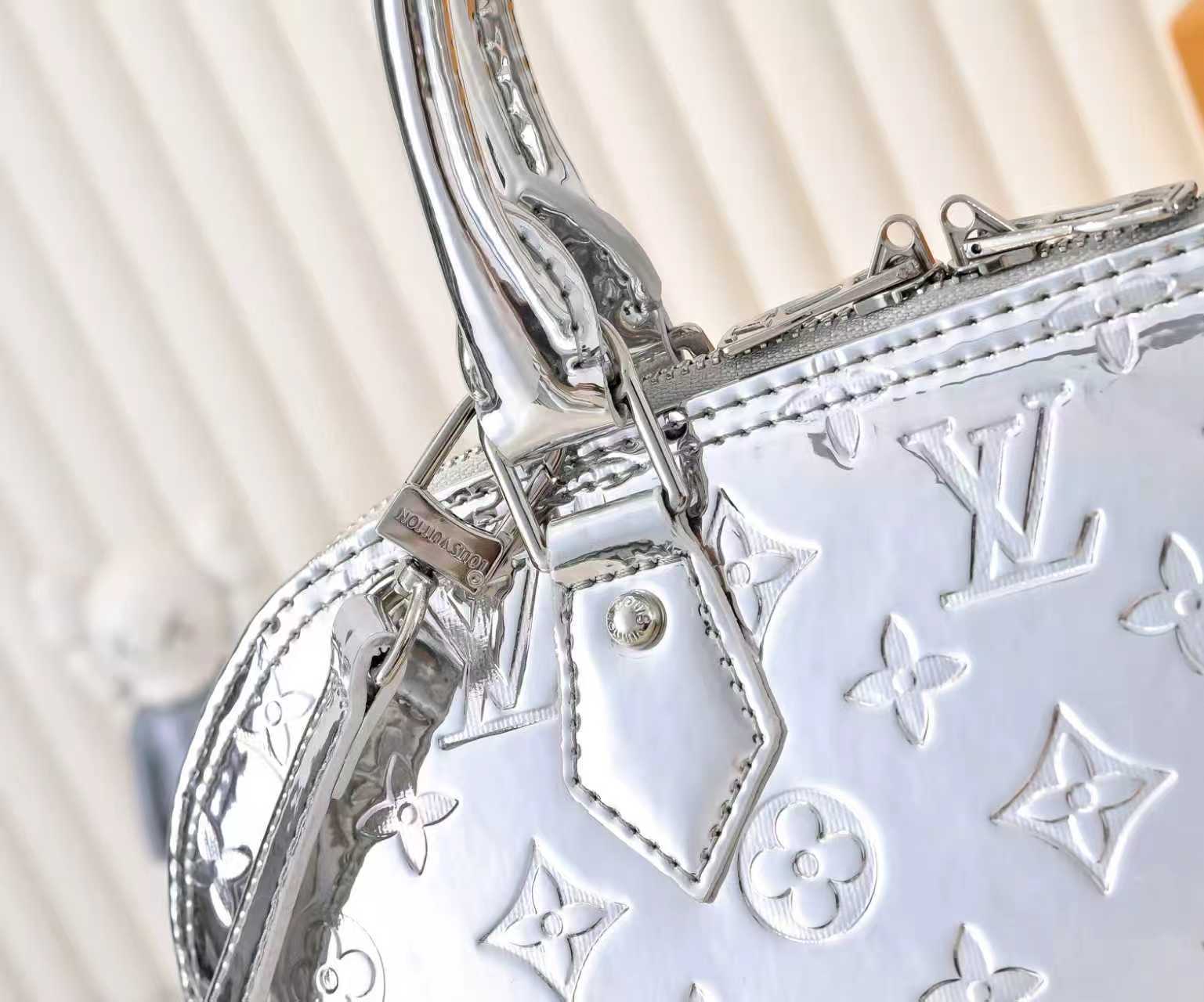 ルイ・ヴィトン2024-2025冬限定「LVSki アルマ グランド」。1892年の金属製旅行鞄をモチーフにした典蔵ハードケースのデザインを現代解釈し、高光沢圧花帆布に新開発の「モノグラムミロール(鏡面モノグラム)」加工を施し、レトロフューチャリズムの美学を表現。スキー場から都会まで、冬のラグジュアリーを体現する多機能バッグ。