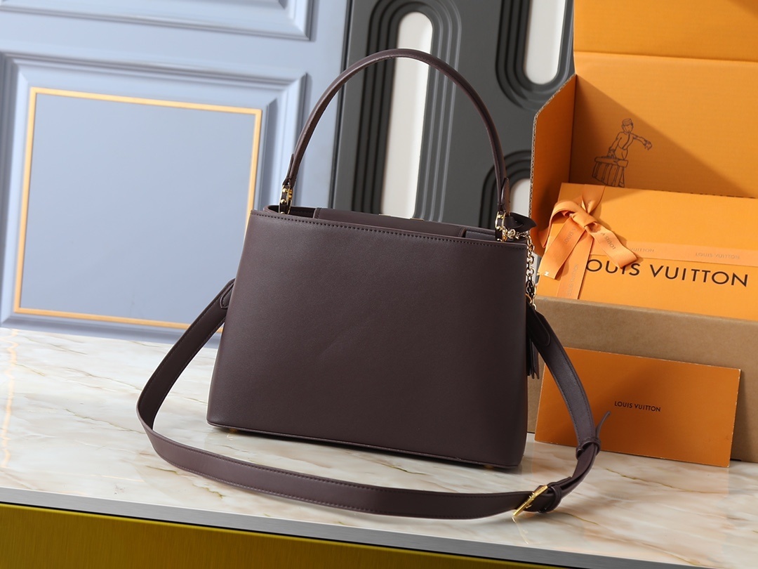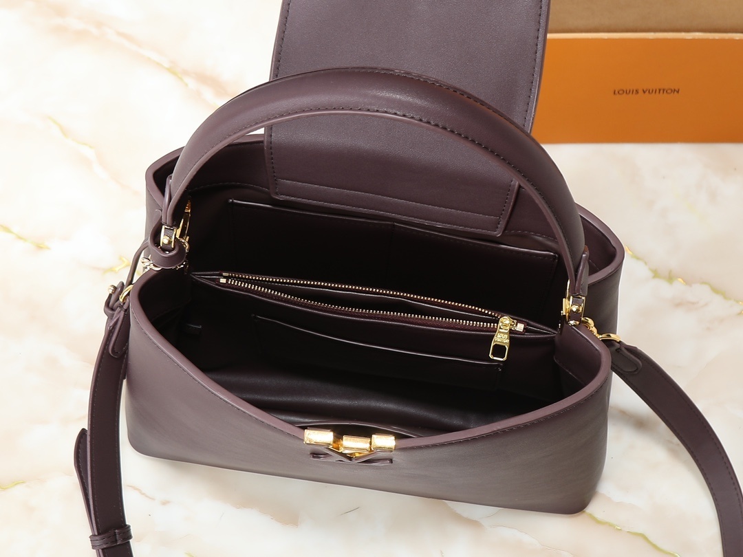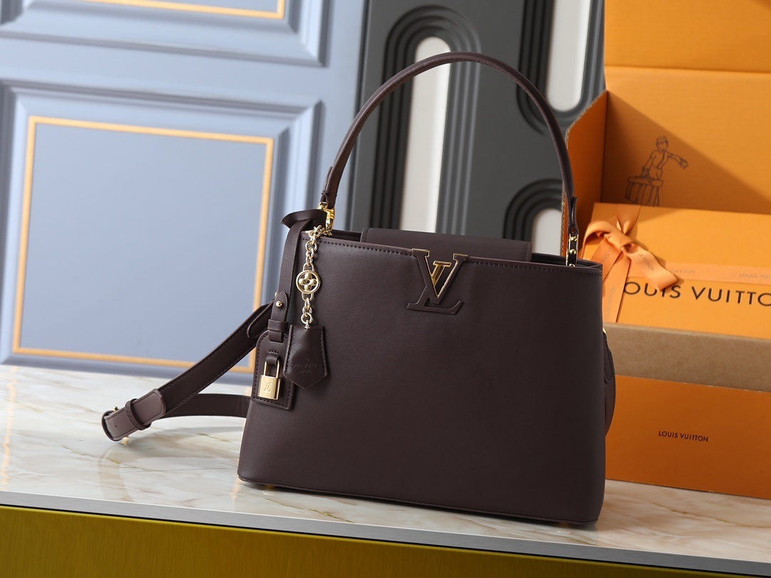 【限定モデル】ルイ・ヴィトン「カプシーヌ・スープル MM」光沢牛革×ゴシックチェーン|シワ加工とメタリックのコントラスト|日常から夜会まで対応の2WAYバッグ