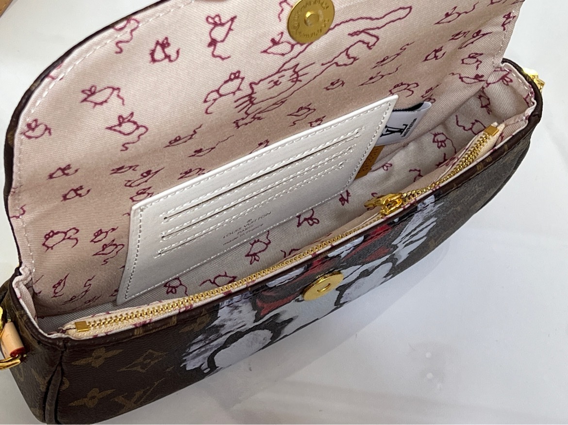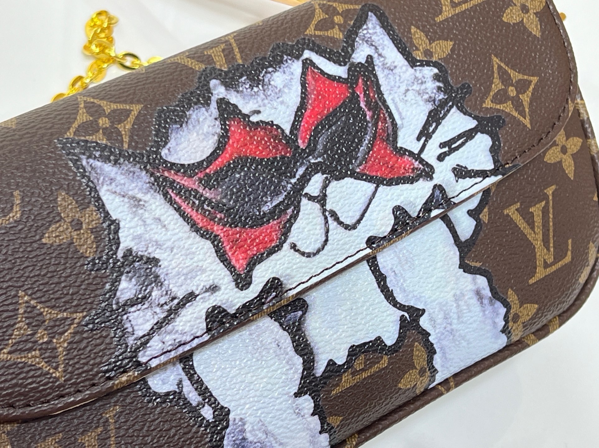 ルイ・ヴィトン × グレース・コディントン「ウォレット・オン・チェーン WY」モノグラム帆布×手描き猫イラスト|アーティストの愛猫情緒を紡ぐ機能美