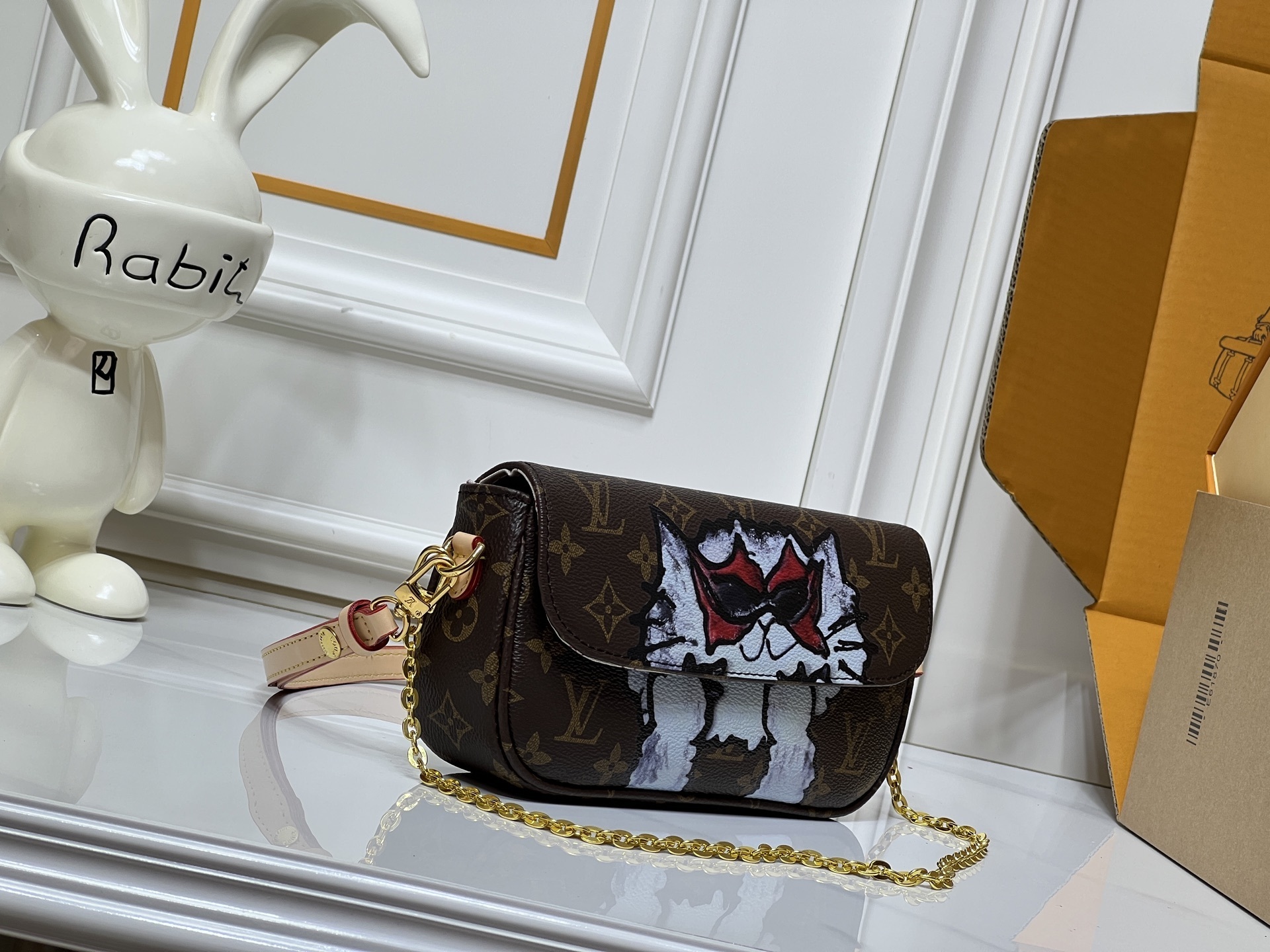 ルイ・ヴィトン × グレース・コディントン 2025-2026秋冬コレクション「ウォレット・オン・チェーン WY」。世界的なファッションアイコンであるグレース・コディントンの愛猫たちの世界観を、モノグラム帆布と手描きイラストで再解釈。1854年創業のルイ・ヴィトン歴史を「猫の視点」で表現し、都会派の多目的バッグとして進化。