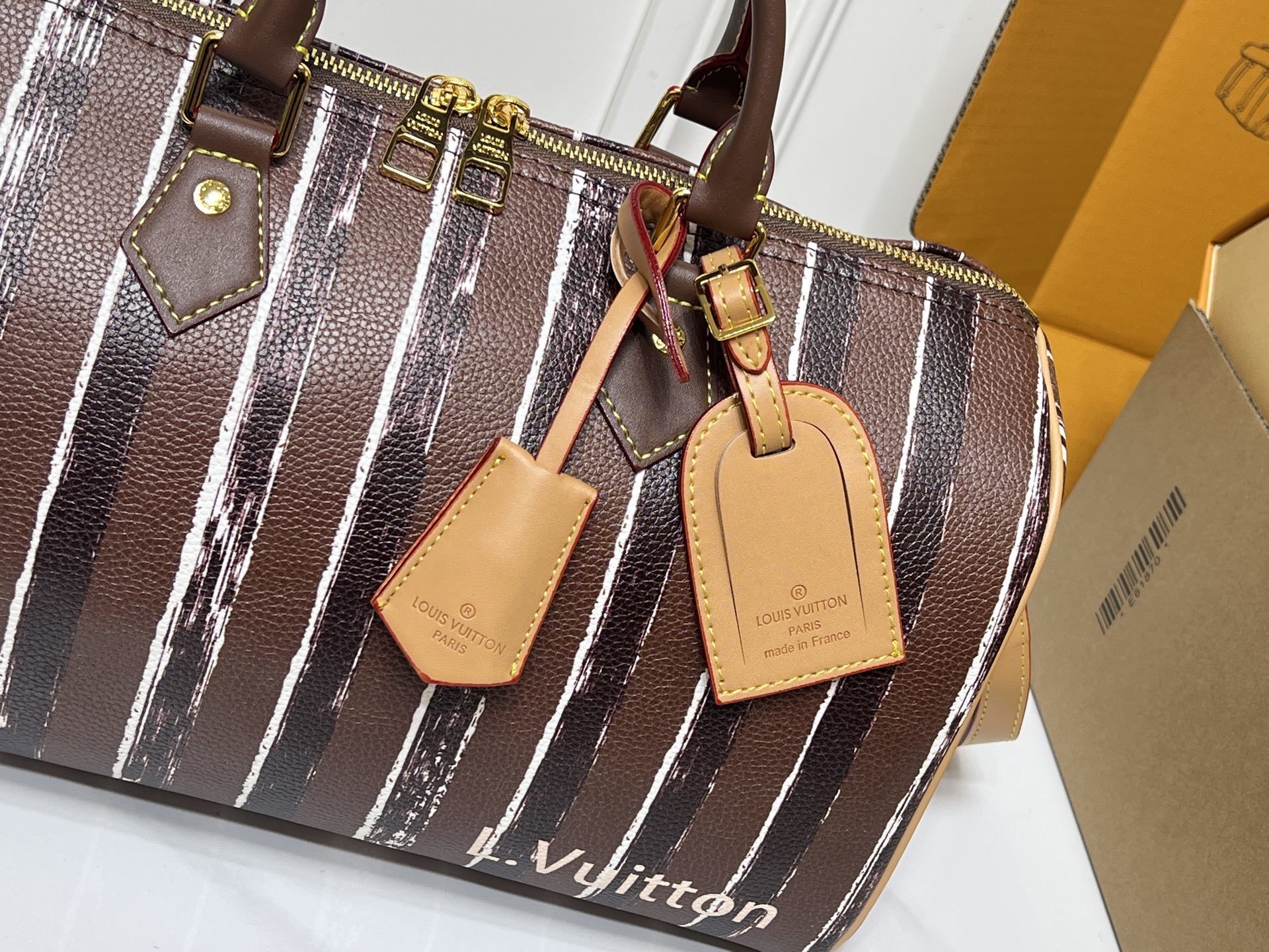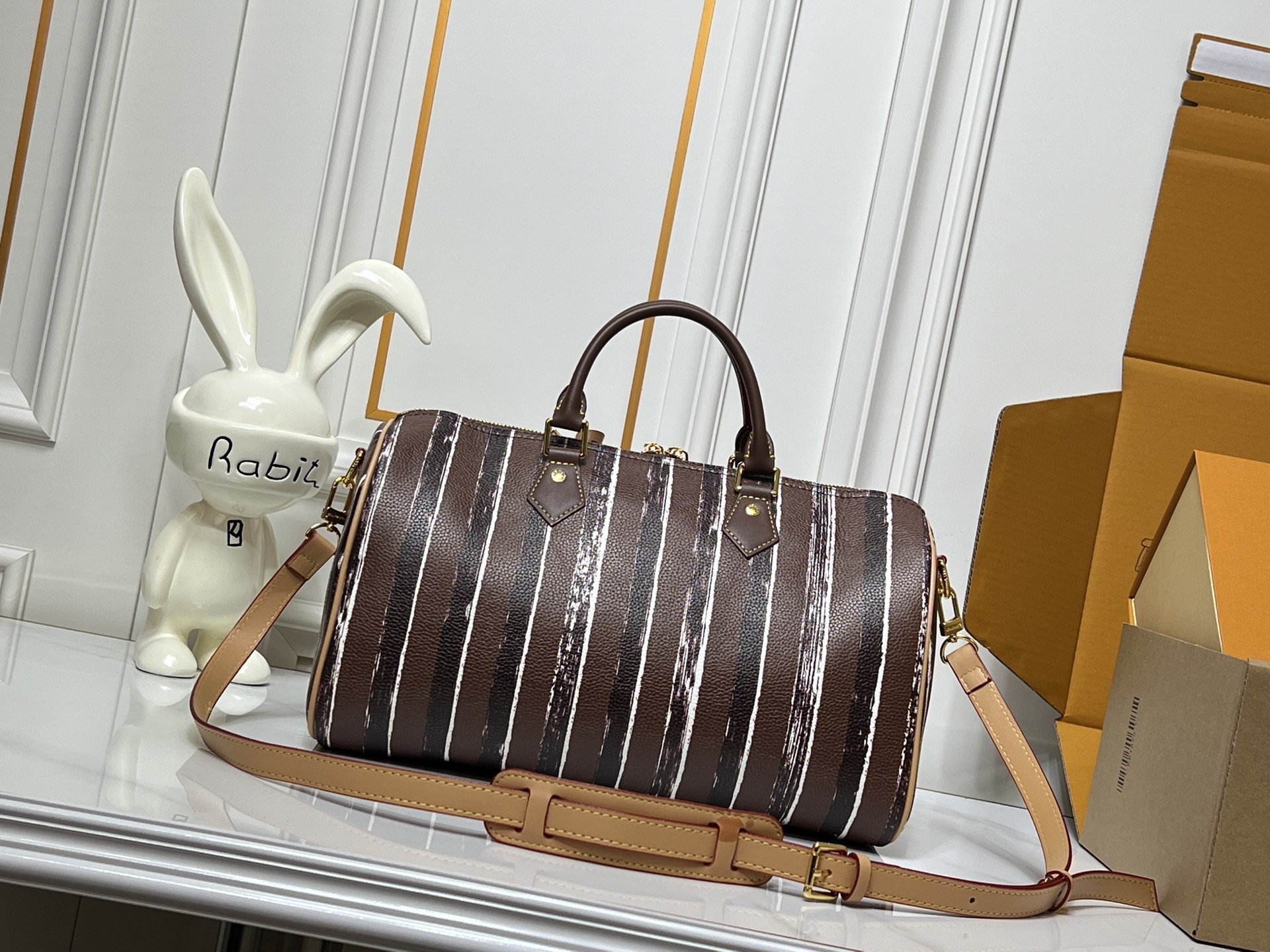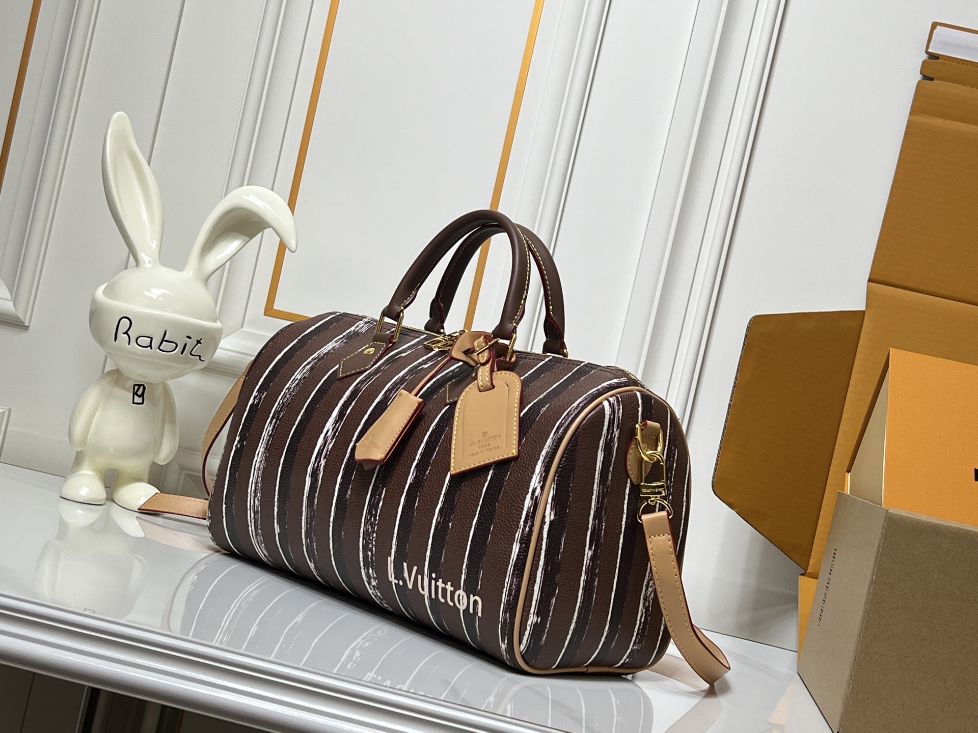 ルイ・ヴィトン スピーディ・バンドゥリエ35 PM ハンドバッグ ―モノグラム帆布と粒面革の融合、ファレル・ウィリアムズの新季アイデア―