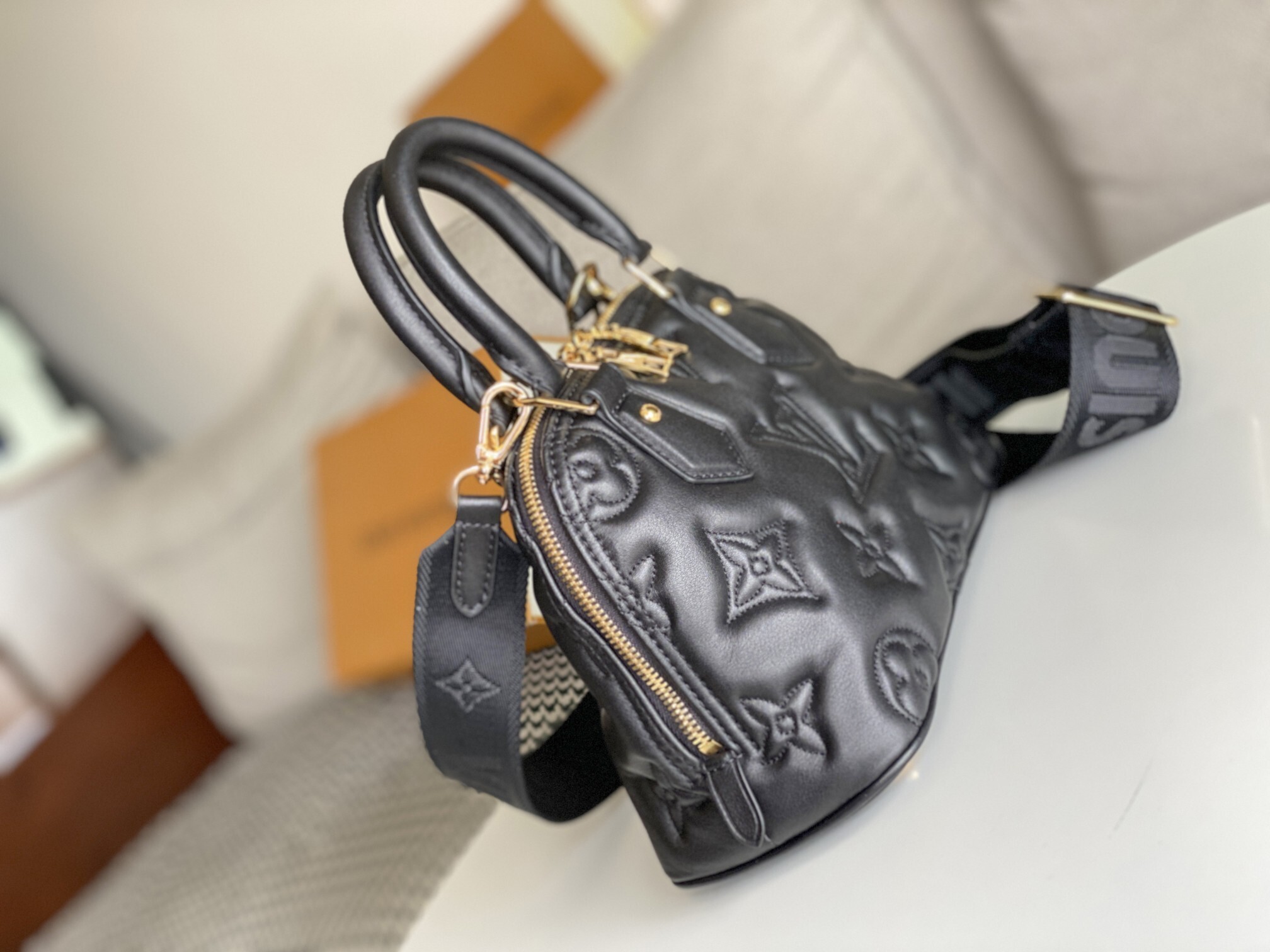 本作は、1930年代のアール・デコ建築からインスピレーションを得た伝統と革新の融合。ルイ・ヴィトンの象徴的なモノグラムを、キルティング加工された牛革に精密に刺繍し、柔らかなフォルムと立体的な構造が織りなす洗練された美を表現。轧制皮革製のストラップと着脱可能な調節式ショルダーベルトにより、実用性とデザイン性を両立した傑作です。