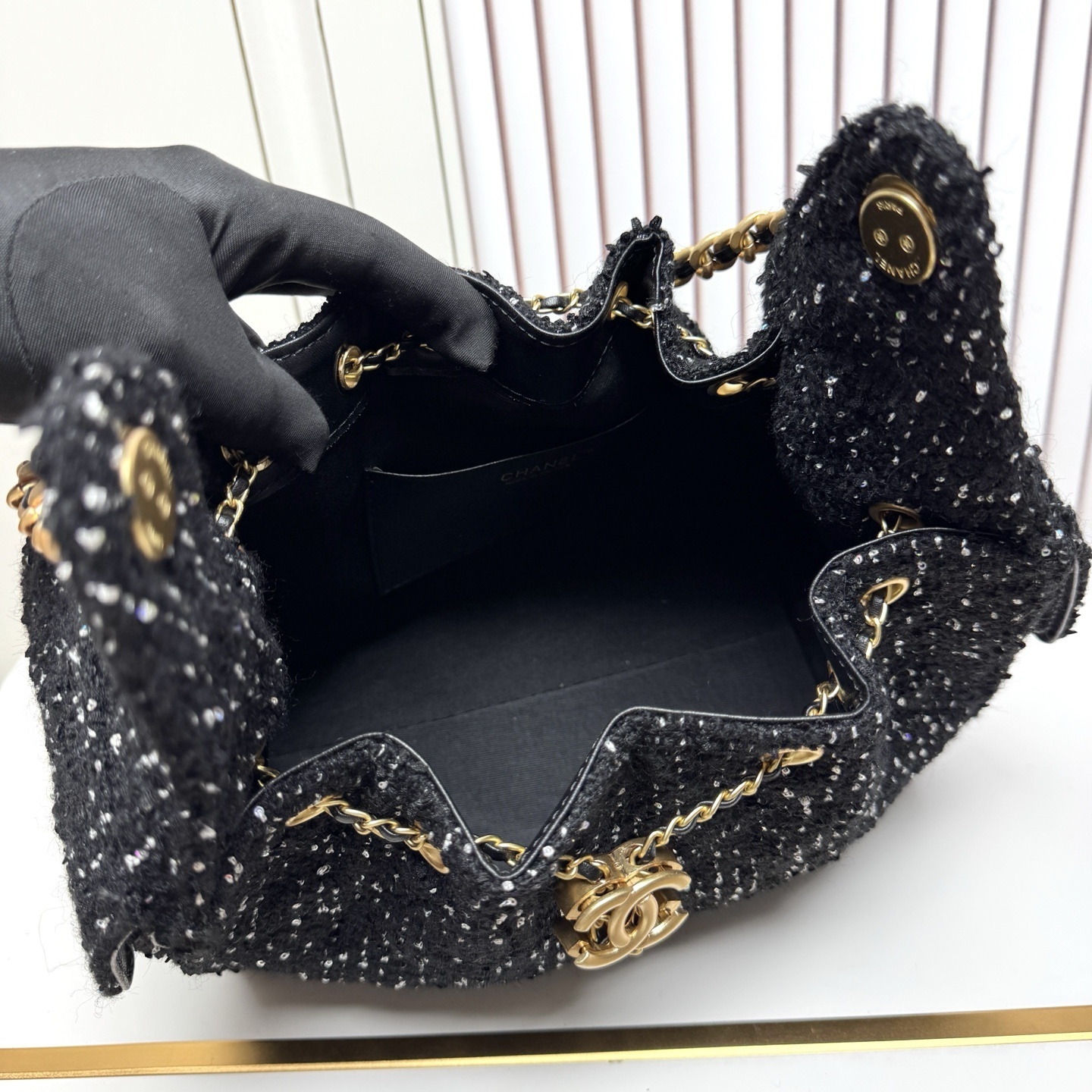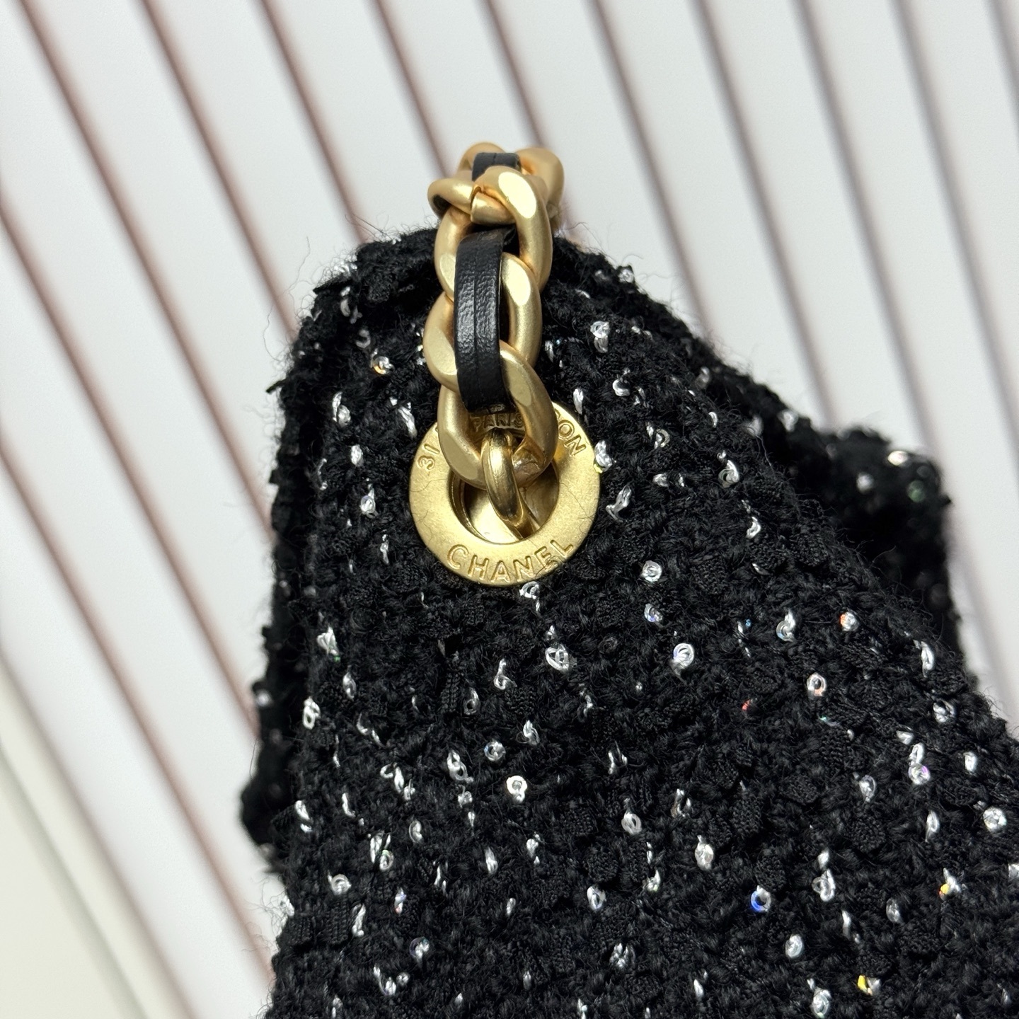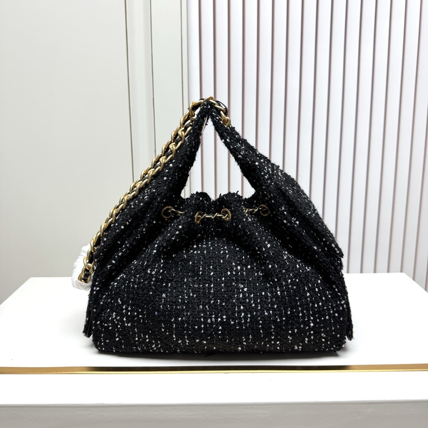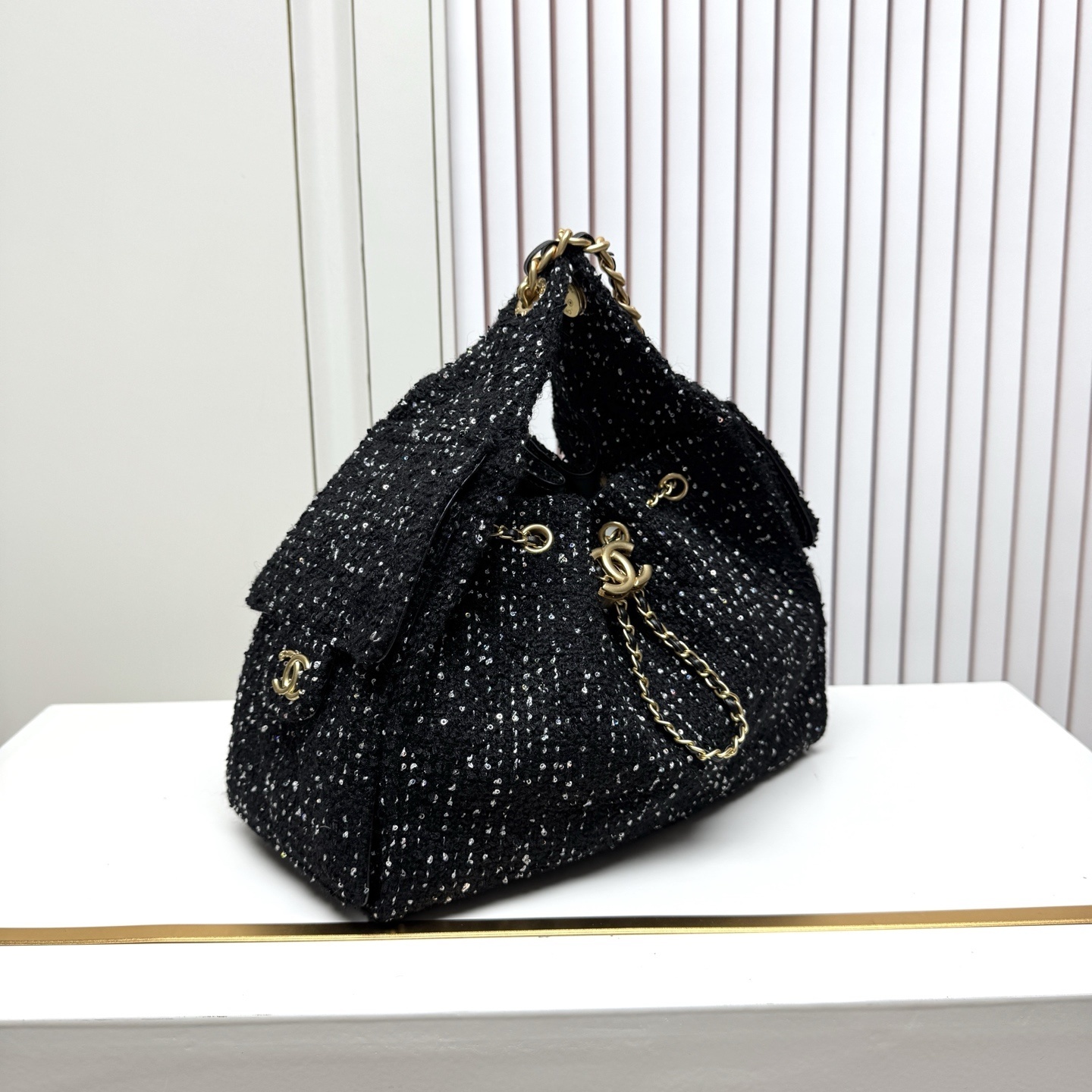 2025年秋冬シーズンに発表された本作は、シャネルのホーボー包シリーズの新たな傑作です。30×26×14cmのコンパクトなボディに、レトロゴールド調のコインバタンとダイヤモンドグリッドパターンを融合させ、1950年代のヴィンテージ美学と現代の都会的ライフスタイルを見事に調和させました。