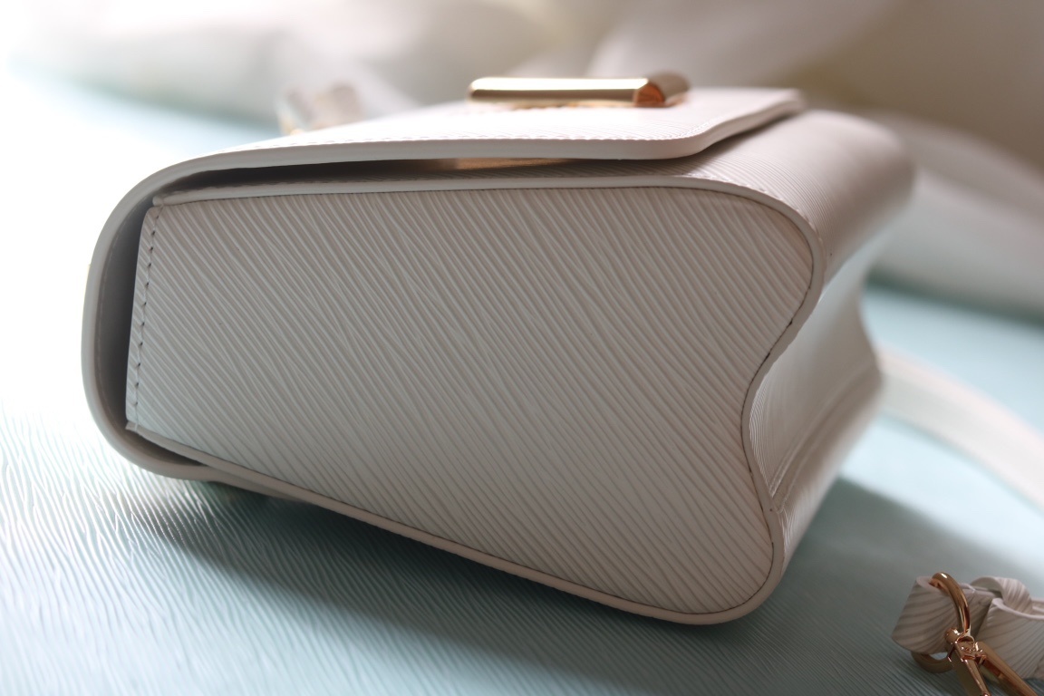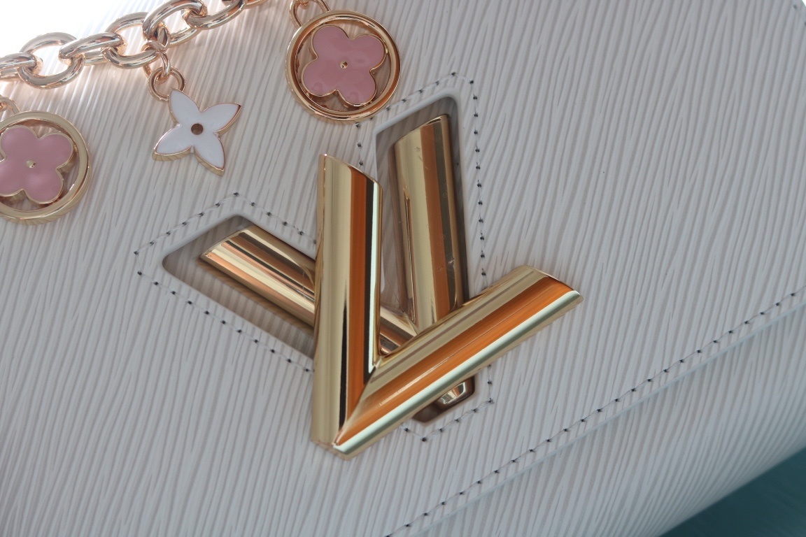 ルイ・ヴィトン TWIST MM バッグ 「Epiグレインドアッシュ革×モノグラム花卉チェーン、調節可能ストラップで演出する都会の洗練美」