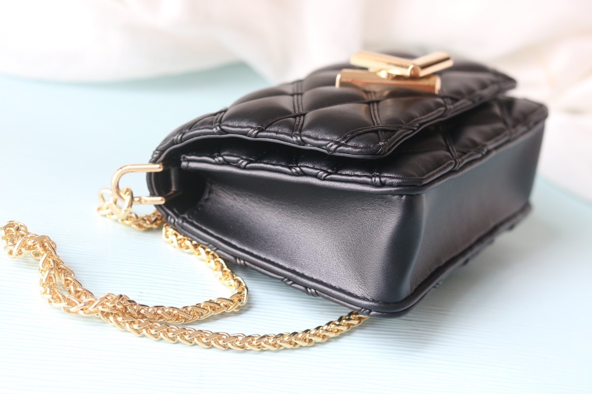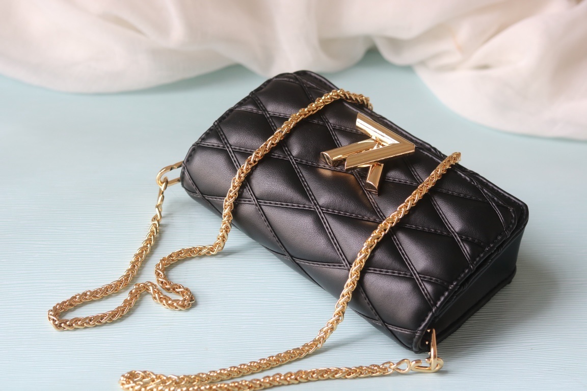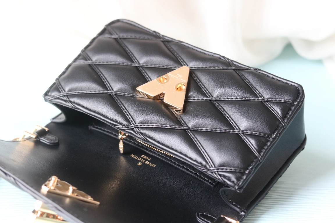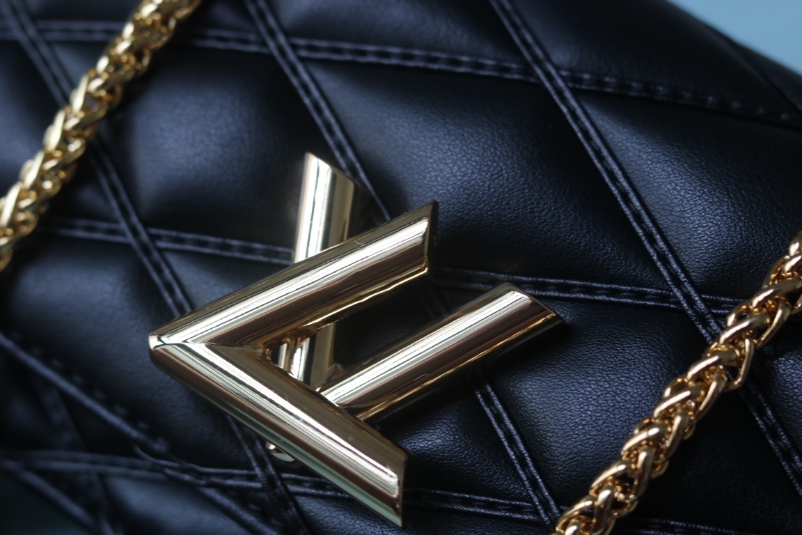 ルイ・ヴィトン ウォレットオンチェーン GO-14 ブラック:キルティングライナー付きラム革とLVツイストロックの洗練、昼夜を問わないスタイリッシュな変幻自在