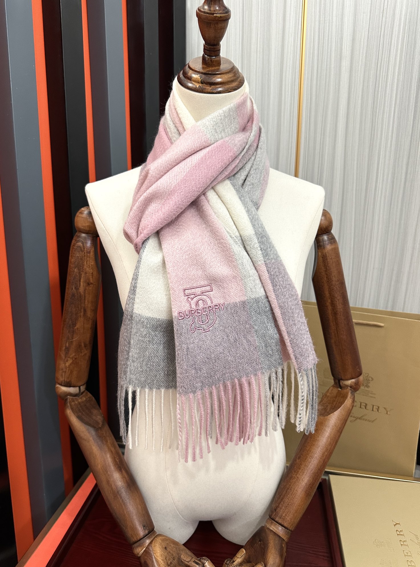 【2025年秋冬】バーバリー カシミヤチェックスカーフ(男女共通) ネイティブカシミヤ×伝統模様